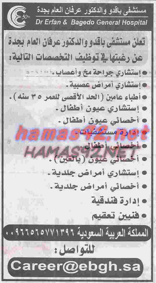 وظائف مستشفى باقدو والدكتور عرفان العام بجدة وظائف خاليه