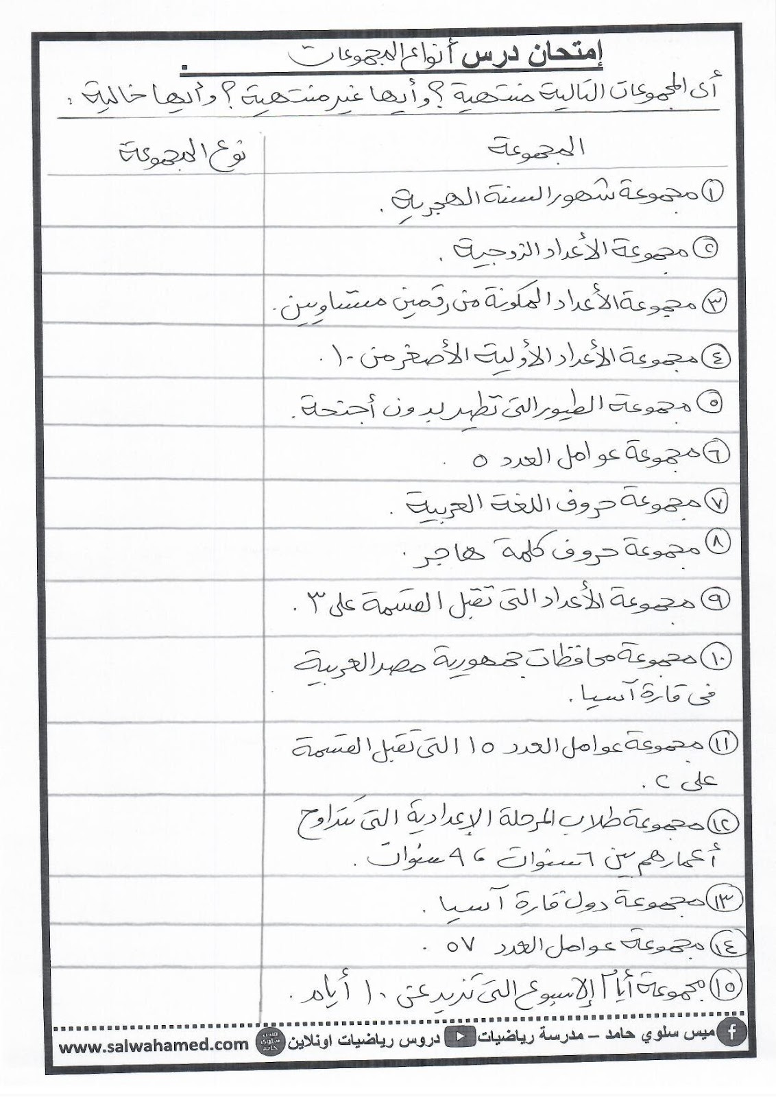 انواع المجموعات للصف الخامس الابتدائي مدونة ميس سلوى حامد