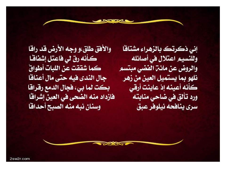 روائع الأدب العربي On Twitter إني ذكرتك بالزهراء مشتاقا والأفق طلق ووجه الأرض قد راقا وللنسيم اعتلال في أصائله كأنه رق لي فاعتل إشفاقا والروض عن مائه الفضي مبتسم كما شققت