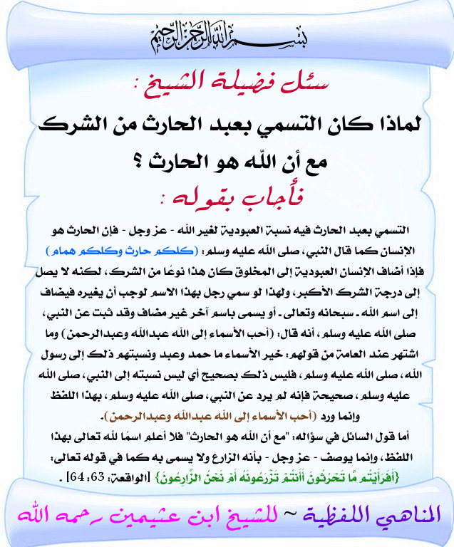 من أسباب محبة الله تعالى عبدا التسمية بعبدالله وعبدالرحمن والحارث