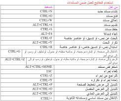 اختصارات لوحة المفاتيح لبرنامج الوورد