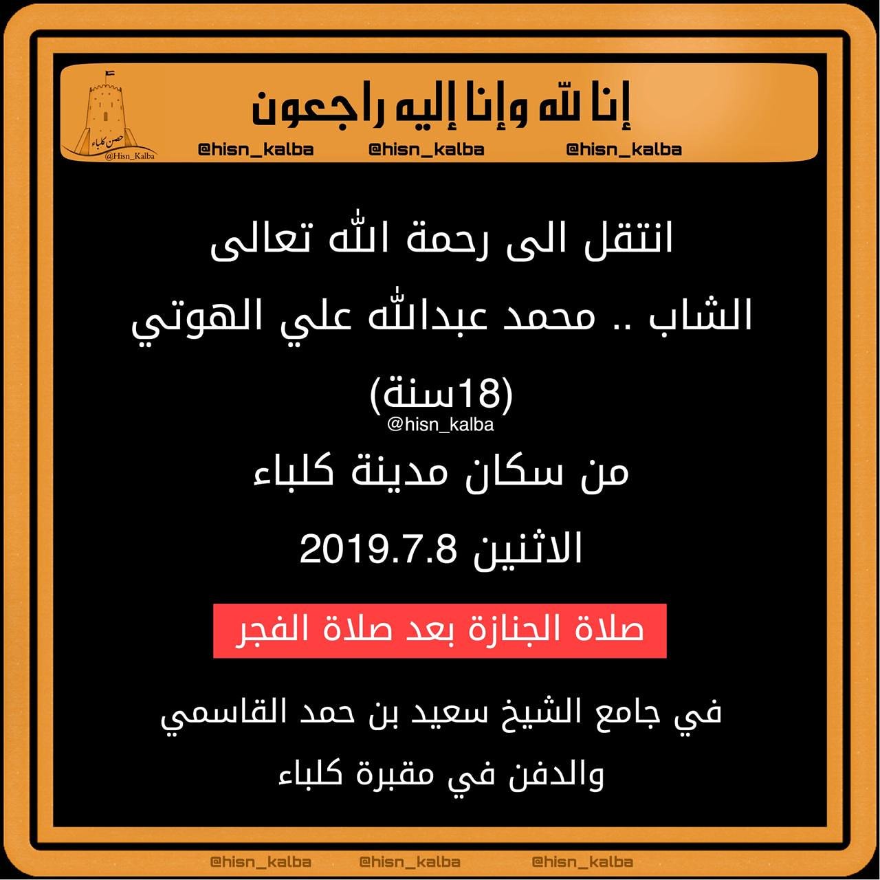 حصن كلباء Pa Twitter صلاة الجنازة 08 07 2019 المتوفى الشاب محمد عبدالله علي محمد الهوتي وقت صلاة الجنازة بعد صلاة الفجر بمسجد الشيخ