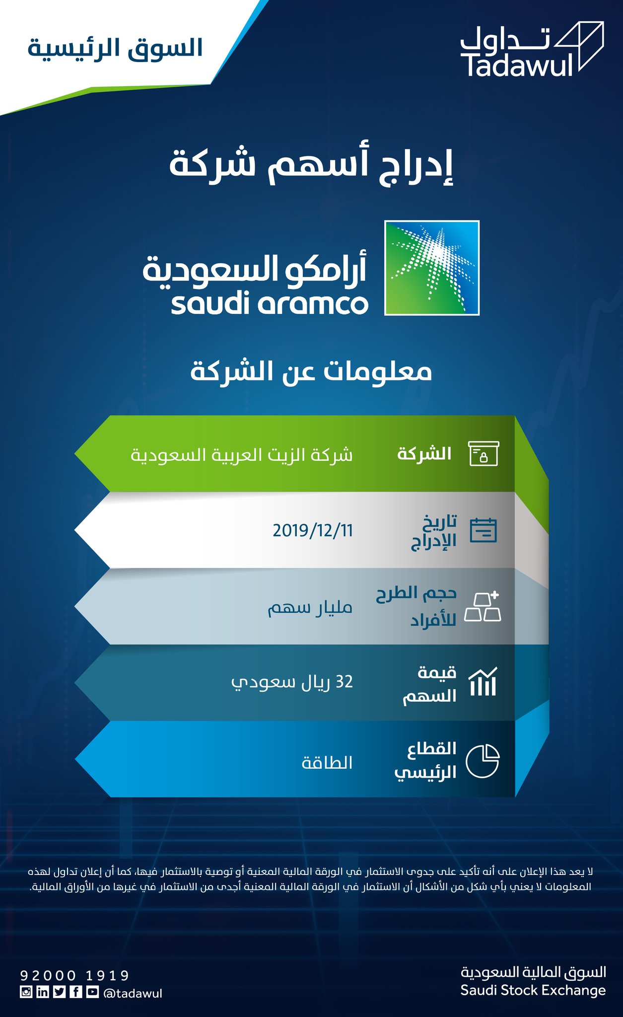 Tadawul تداول On Twitter سيتم إدراج أسهم شركة أرامكو السعودية يوم الأربعاء القادم 2019 12 11م في السوق الرئيسية Https T Co Xu2n9cipgf