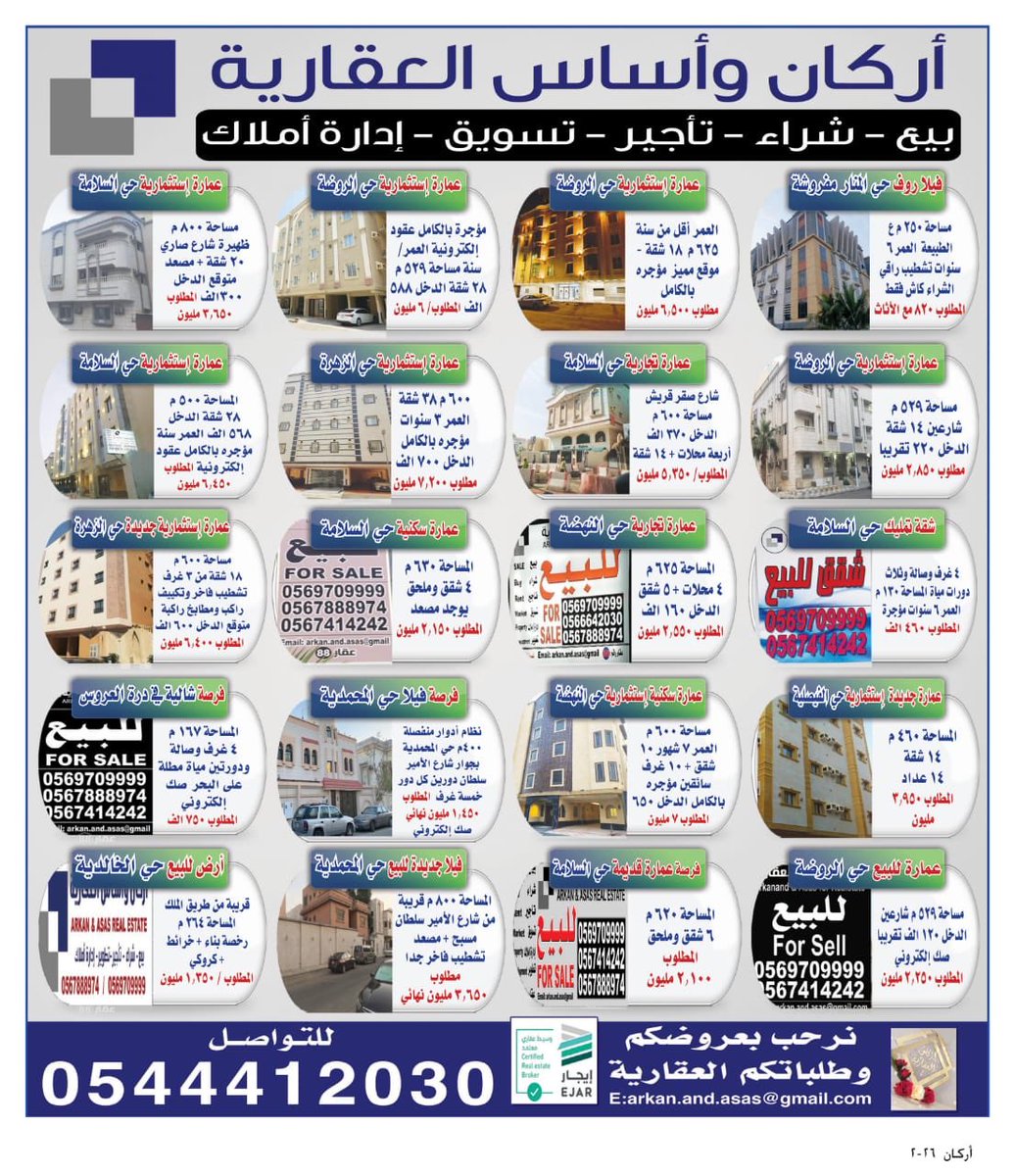 اركان واساس العقارية 72 عقار للبيع وللايجار أي سمسار السعودية