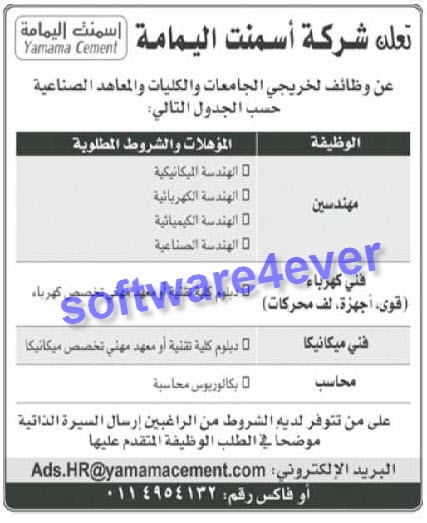 السعودي للتوظيف وظائف ادارية وهندسية شاغرة لدى شركة اسمنت اليمامة في الرياض وجدة