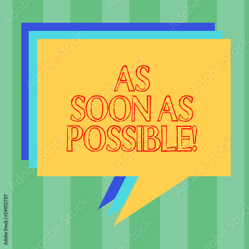 Handwriting Text Writing As Soon As Possible Concept Meaning Immediately Urgent Take Action Quickly Hurry Up Stack Of Speech Bubble Different Color B Stock Photo Alamy