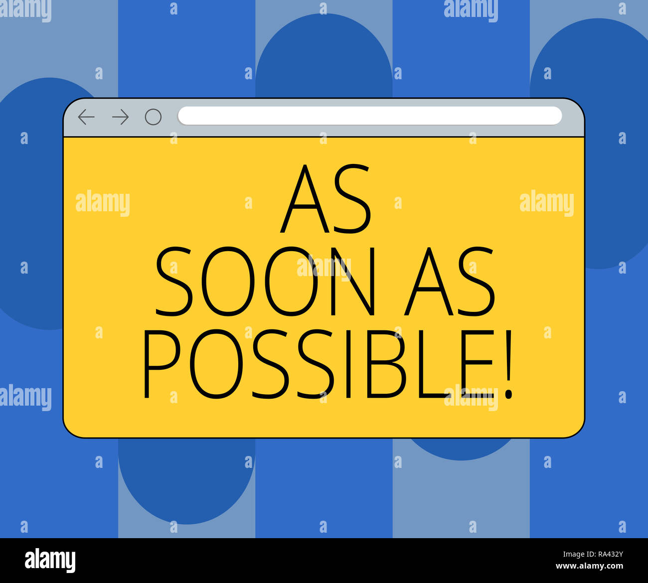 Handwriting Text As Soon As Possible Concept Meaning Immediately Urgent Take Action Quickly Hurry Up Monitor Screen With Forward Backward Progress Co Stock Photo Alamy