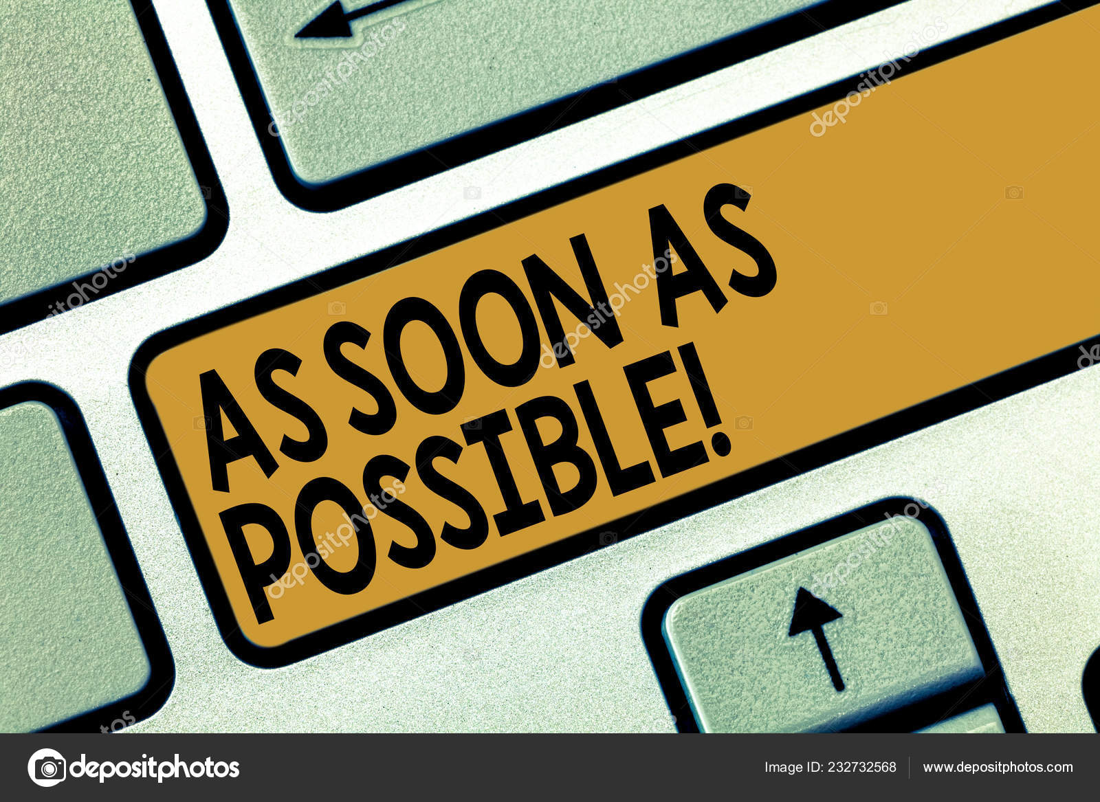 Handwriting Text Writing As Soon As Possible Concept Meaning Immediately Urgent Take Action Quickly Hurry Up Keyboard Key Intention To Create Computer Message Pressing Keypad Idea Stock Photo C Artursz 232732568