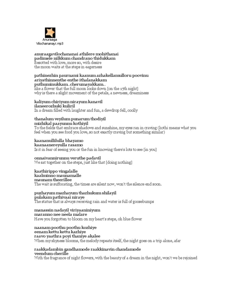 Anuraaga Vilochananai Audio Lylic With English Meaning