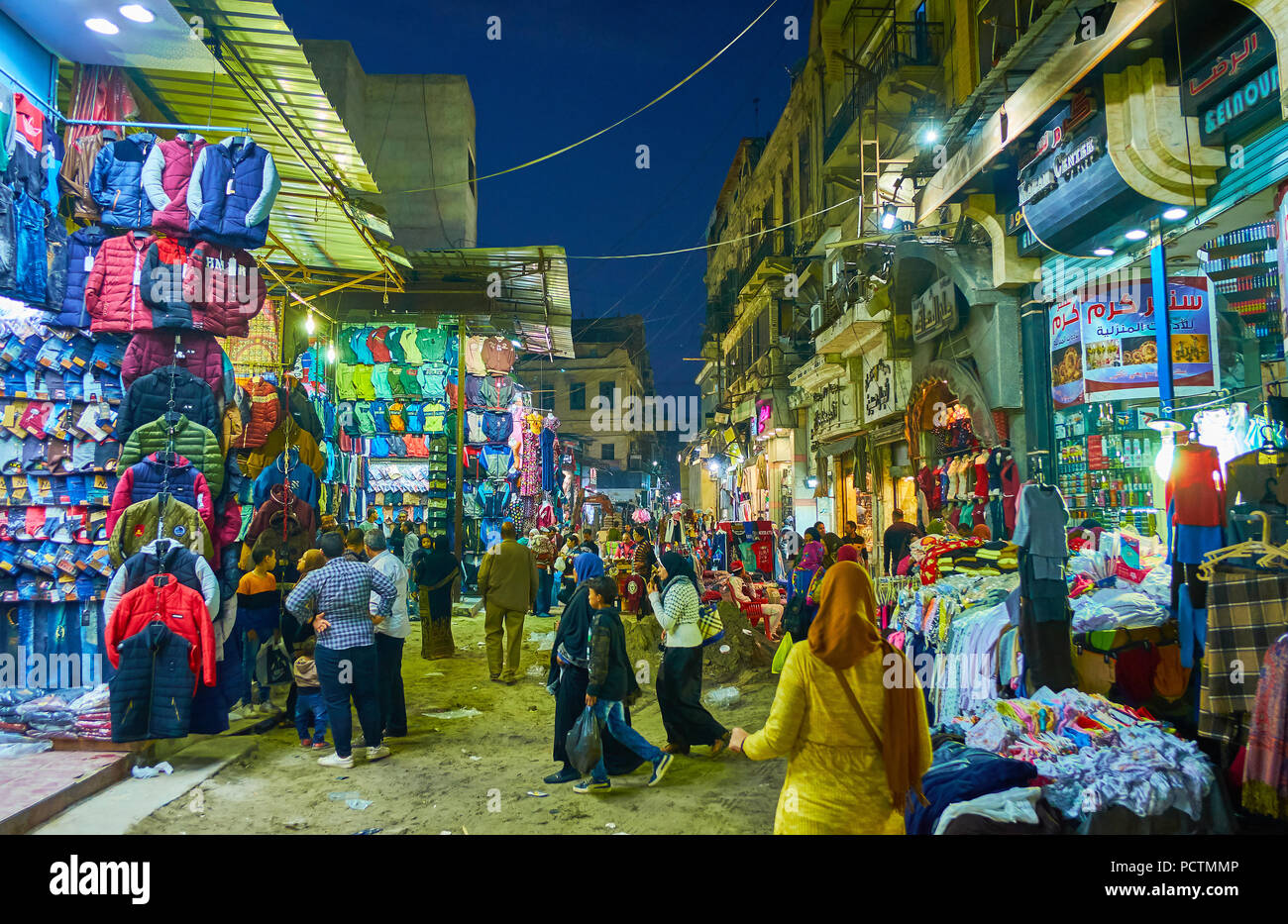 Alexandria Egypt December 18 2017 The Evening Street Of Souq At Tork With Clothes Stalls And Stores On December 18 In Alexandria Stock Photo Alamy